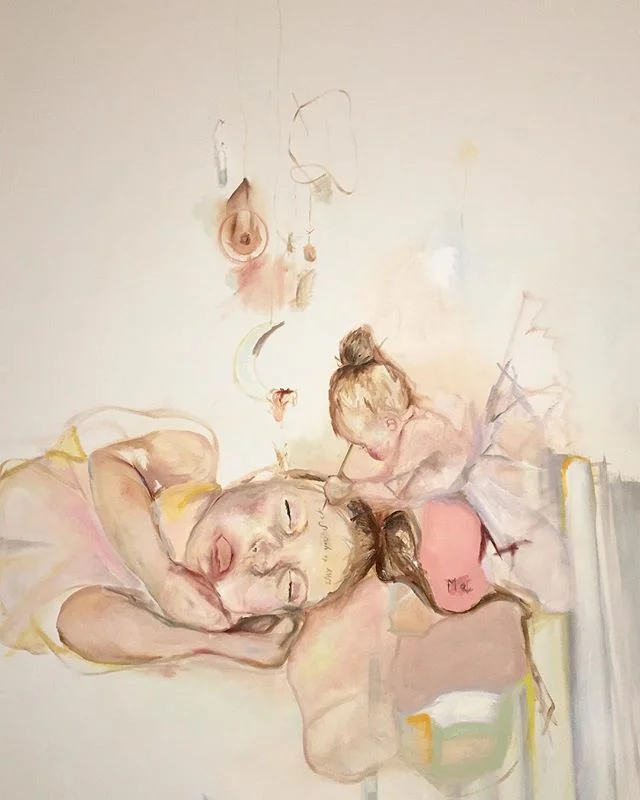 In my work I currently reference myself, as well as images of family members to create melodramatic narrative paintings. I explore the development of identity through memory and experiences of growing up. Aging is something that we all have in common, but is also individual to each of us. Through my paintings I attempt to reveal and personify the anxieties of experiences that come with age, such as loss or trauma. A common theme in these paintings is the exploration of the body through its deterioration, its many stages of development, as well as struggles with body image. I suggest that issues with body image can heighten oneβs realization of their temporality.